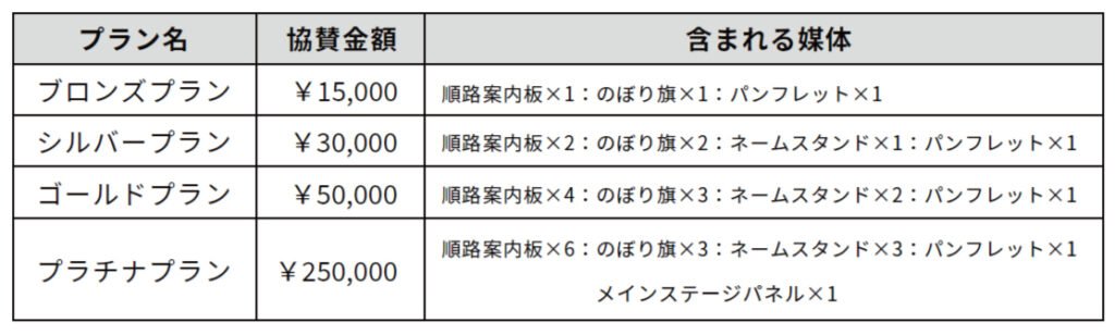 つきましては、本祭典を運営・推進していくにあたりまして、皆さまに本祭典の趣旨をご理解いただき、寄付金・広告協賛金を募らせていただきたいと考えております。運営につきましては、できるだけ簡素・質素を旨と致す所存ではありますが、その経費は各方面からの協賛金による支援を仰がざるを得ないのが実情です。